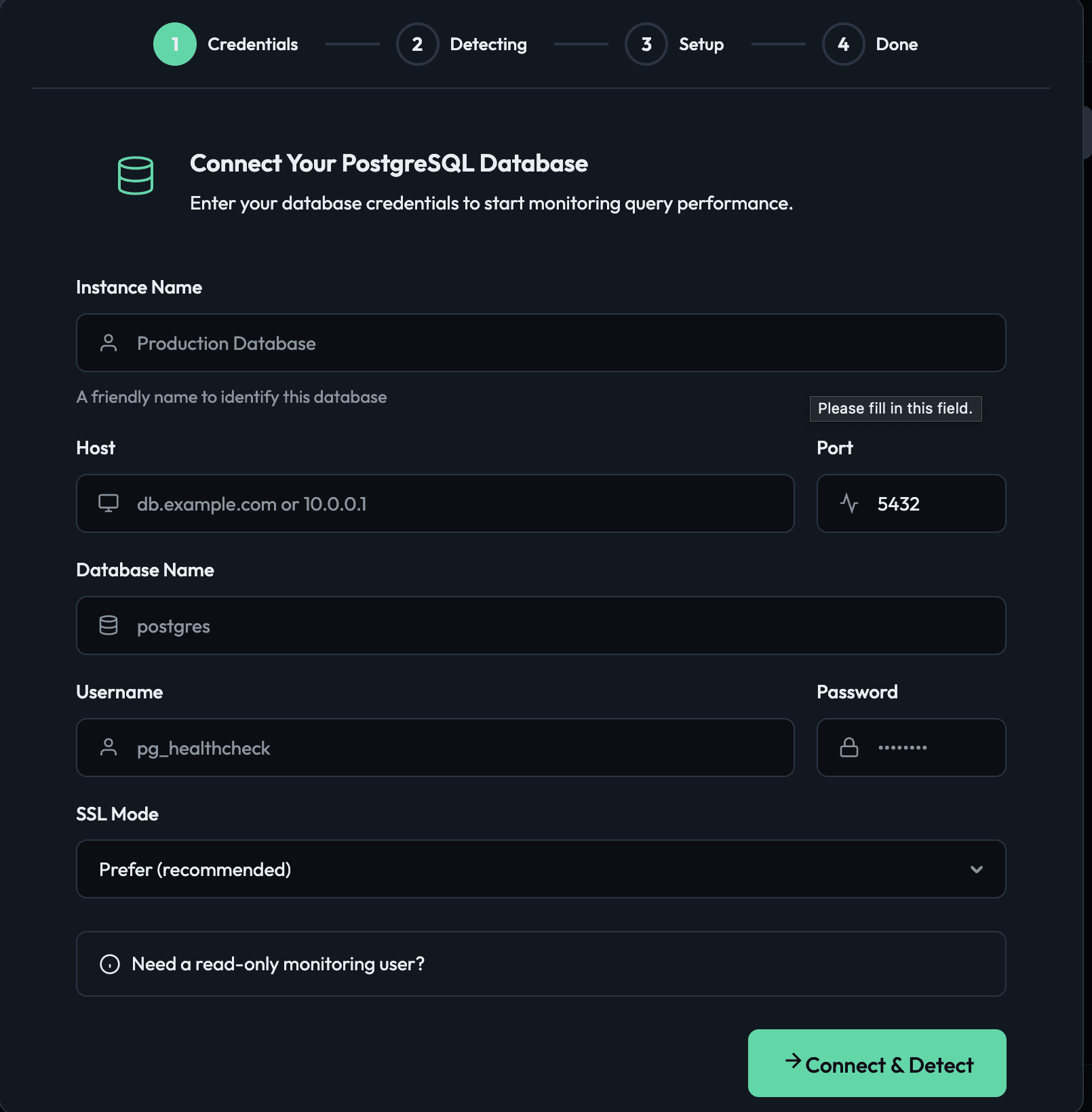 Connect your DB (read-only user)