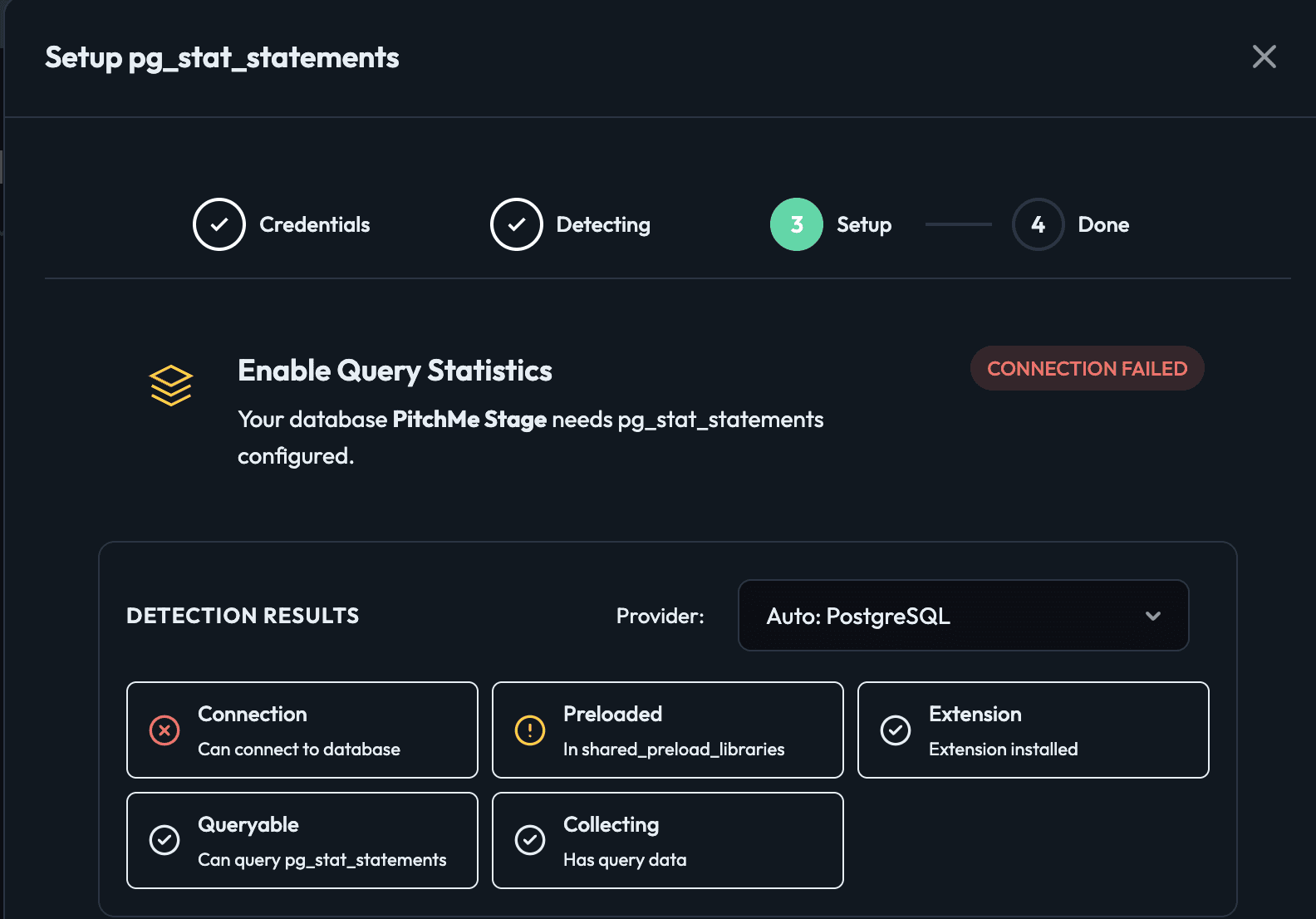 We detect your current state and tell you exactly what to do next: Extension missing vs. needs restart vs. permission issue Provider-aware steps for RDS / Cloud SQL / Azure / Supabase / Neon Copy-paste SQL + “Forward to admin” message